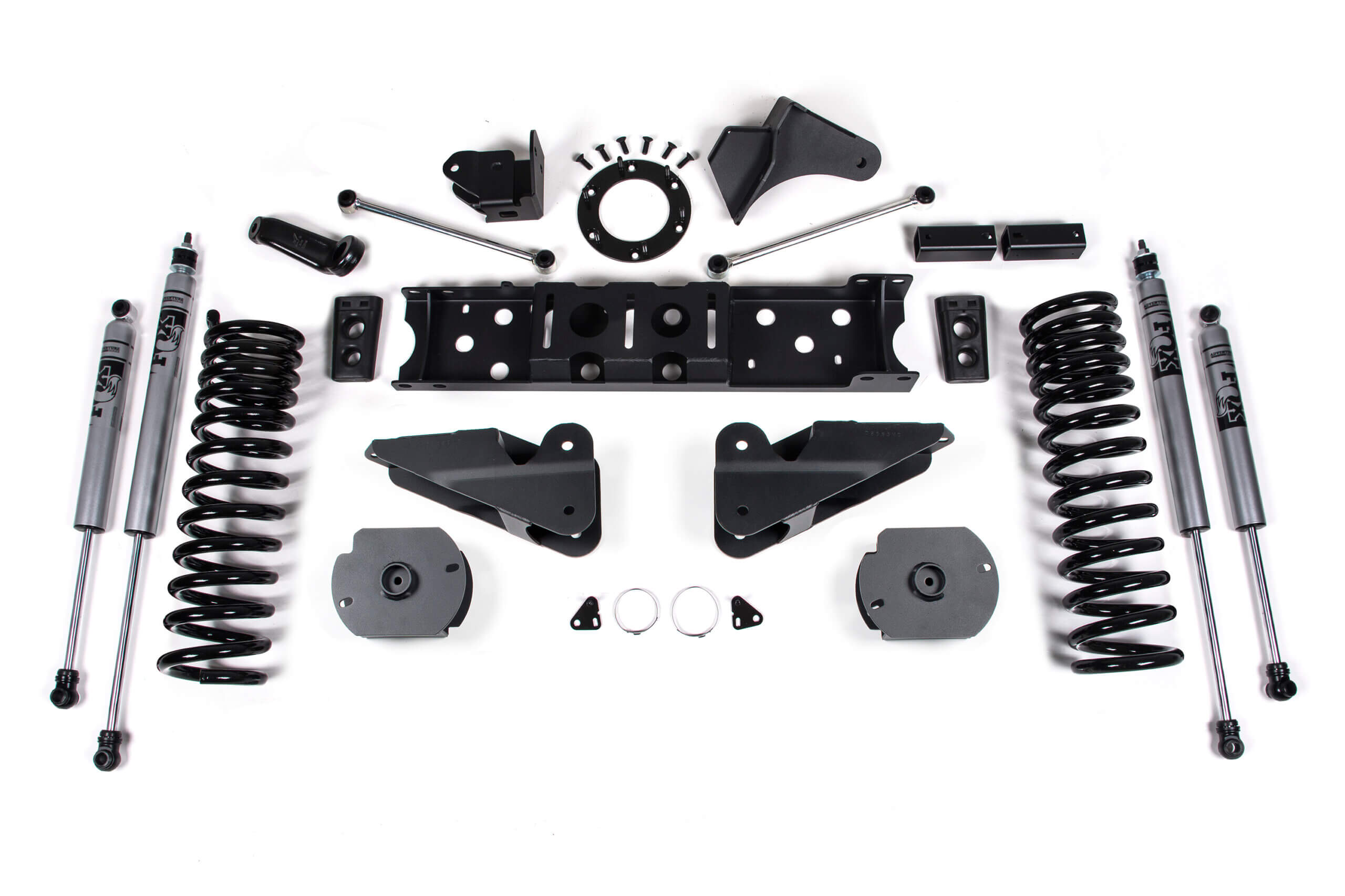 • F/R HD track bar relocation brackets to correctly position both axles under the truck